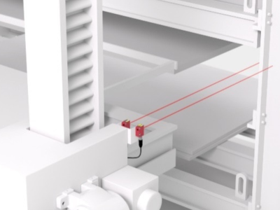 Los escáneres láser de seguridad monitorizan toda la estación de transferencia entre la unidad robotizada y el AGV. Sus campos de protección detectan...