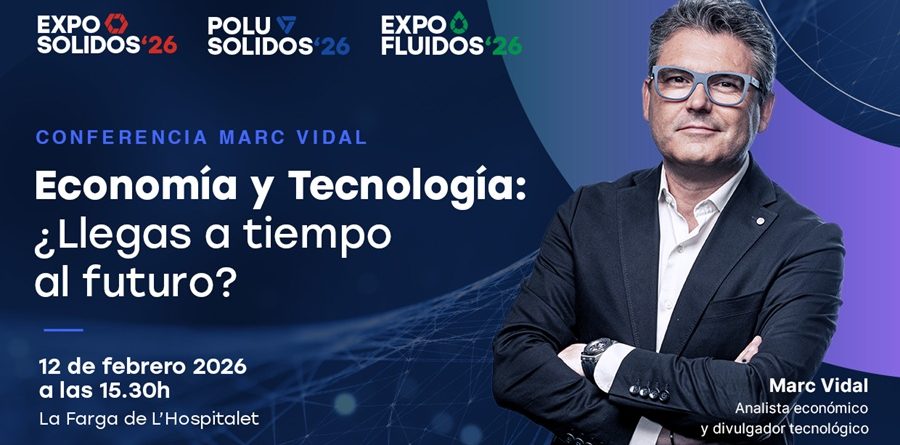 El reconocido divulgador, consultor y analista de economía digital Marc Vidal ofrecerá una conferencia titulada “Economía y Tecnología: ¿Llegas a tiempo al futuro?” en el marco de las ferias EXPOSOLIDOS 2026, POLUSOLIDOS 2026 y EXPOFLUIDOS 2026. El acto tendrá lugar el 12 de febrero de 2026 a las 15:30 h en la Sala Polivalente de La Farga de L’Hospitalet, y se espera la asistencia de más de 600 profesionales del sector.