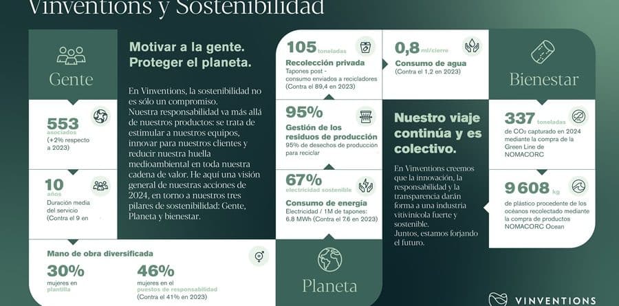 El informe hace balance de los resultados ambientales y sociales obtenidos durante el año 2024, un año especialmente significativo para la empresa, que celebró su 25.º aniversario. Desde su fundación en 1999 con el lanzamiento del primer tapón Nomacorc, Vinventions ha promovido un enfoque innovador y responsable en el sector del packaging para vinos, licores y aceites de oliva.
